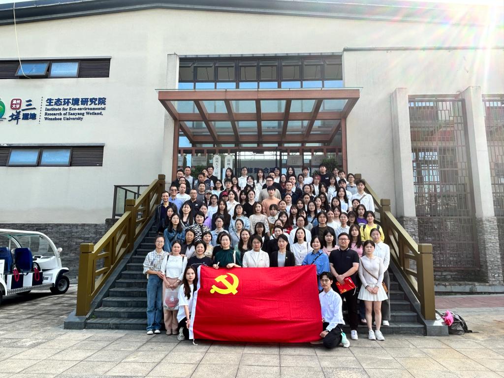 全体党员走进sunbet申愽官网三垟湿地生态环境研究院学习参观。研究院致力于生态保护修复科技研发、生物多样性调查监测等,在服务地方生态环境治理等方面取得明显成效,是学校深入学习贯彻习近平生态文明思想的生动实践。在讲解员的讲解下,全体党员不仅了解了生态环境研究院的创办初心与宗旨,还深刻领悟了习近平生态文明思想和“绿水青山就是金山银山”的发展理念。