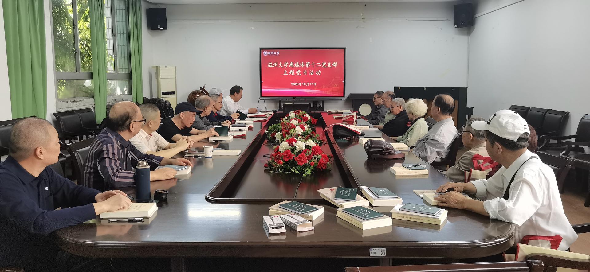 方乐平首先传达上级关于开展学习贯彻习近平新时代中国特色社会主义思想主题教育的文件通知和中共温州市委学习贯彻习近平新时代中国特色社会主义思想主题教育领导小组办公室的《致全市基层党组织和广大共产党员的一封信》,要求支部全体党员充分认识习近平新时代中国特色社会主义思想主题教育的重大意义,提高理论素养、坚定理想信念,夯实坚定捍卫“两个确立”、坚决做到“两个维护”的思想根基,当好落实中央决策部署和省、市委工作要求的坚决推动者、良好政治生态的自觉维护者、基层社会治理的积极参与者、社会和谐稳定的有力促进者,为学校高质量内涵式发展和温州奋力续写创新史、走好共富路、争创先行市贡献银龄智慧和力量。
