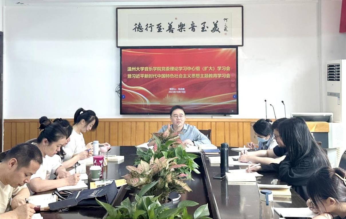 10月18日下午,音乐学院党委书记朱启鑫主持召开sunbet申愽官网音乐学院党委理论学习中心组(扩大)学习会暨学习贯彻习近平新时代中国特色社会主义思想主题教育专题学习会,学院党委理论学习中心组成员、全体师生党支部书记、支部委员参加学习。