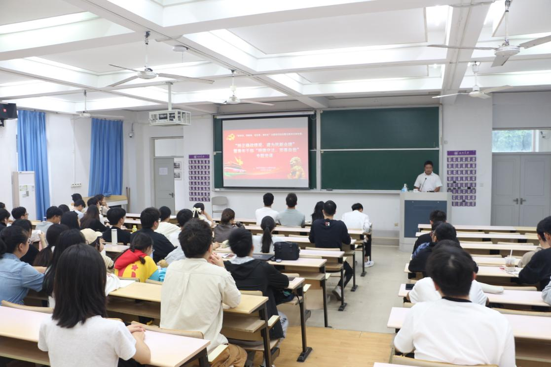 本次活动也是数理学院教工行政党支部“学讲话、悟精神、促发展、惠民生”主题党日活动,行政支部全体党员,各学生党支部支委,学院团学组织干部、各班班长与团支书近70人参与学习。党课上,章志图以高校辅导员、高校学生干部的负面新闻事件为引题,阐述树立正确政绩观的现实作用,教育引导青年干部和学生干部以案为鉴检视自身,树立和践行正确政绩观。随后,他从深刻认识正确政绩观的重大意义、全面把握正确政绩观的丰富内涵、以正确导向引领践行正确政绩观等五个方面展开讲解,希望青年干部明德守法、完善自我。