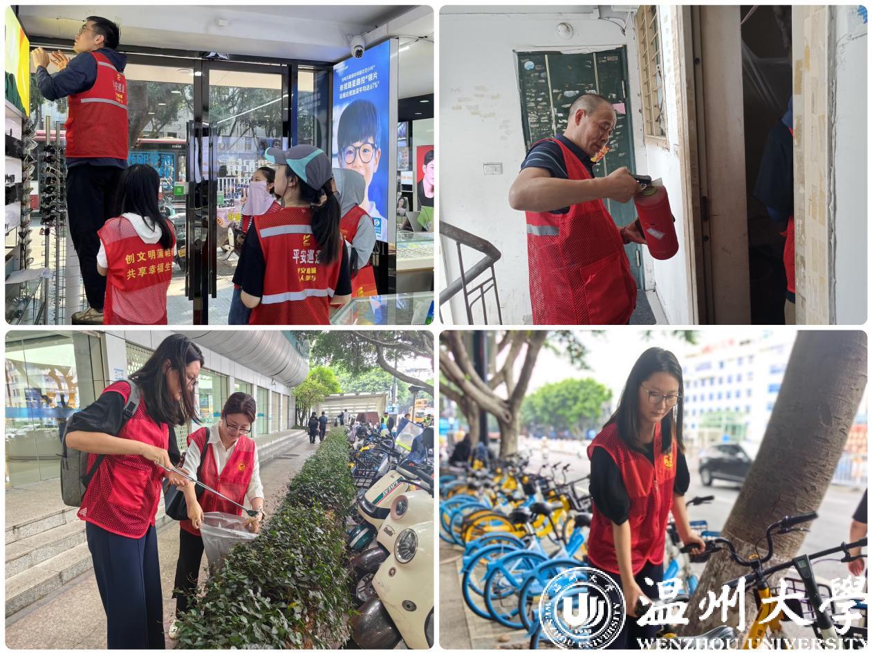 机关党委党员干部分20个批次深入一线与社群支部党员、工作人员并肩作战,弹好“调查、宣讲、走访”三部曲,织密“平安温州”防护网。一是走上街头普及安全知识。通过发放问卷形式,开展群众安全感调查,宣讲食品药品安全、用电用火用气安全,引导居民积极举报犯罪线索,崇尚科学防范邪教,提高警惕防范诈骗,拒绝毒品珍爱生命。动员辖区居民签订消防安全责任书,落实安全责任制。二是挨家挨户排查安全隐患。上门走访居民检查瓶装燃气、减压阀、胶管、用汽环境、灶具、电瓶车等使用情况,筑牢社区安全屏障,用心守护居民安全。三是深入街区助力环境整治。围绕“文明城市、幸福温州”建设重点,对蒲鞋市社区周边的主干道及地下通道进行卫生整治、垃圾分类,对路面通道进行标识检查,规范车辆停靠,劝导无序人员不文明行为,以“微改造”带动“精提升”,助力提升行人的体验感和舒适感。四是深入群众开展“志愿浙江”推广行动。通过街头驻点形式,一对一指导居民使用小程序宣传“志愿浙江”平台,倡导人人参与志愿服务,推进志愿服务常态化开展和数智化推广,争取实现15分钟志愿服务圈,凝聚社区工作人员、居民党员、退役军人、医护工作者等各方力量,把服务延伸到居民家中,助力打造“志愿温州”。