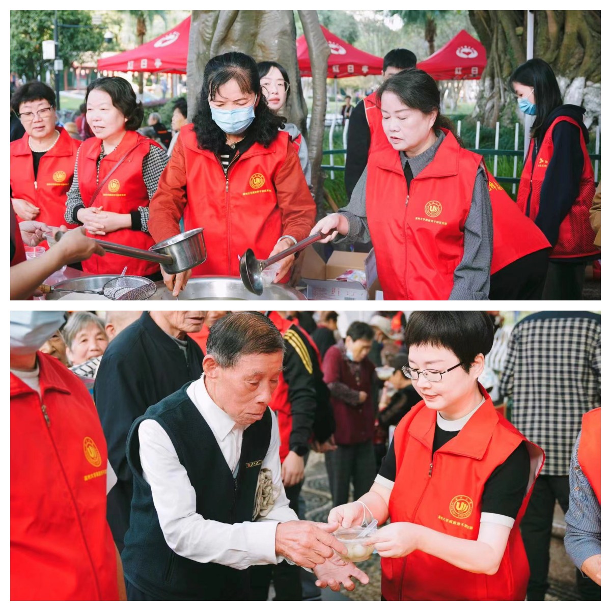 上午7点,sunbet申愽官网离退休第十党支部十八位志愿者,整整齐齐地穿着红马甲,早早地来到红日亭活动现场。在红日亭义工队负责人的带领下,大家开启了有序的工作:拉横幅、搬桌椅、摆碗筷、煮汤圆等等,忙得不亦乐乎。此时,大榕树下已经排起长长的队伍。在贫困老人、环卫工人、残障人士们期待的目光中,大家把一碗碗热气腾腾的汤圆送到他们手中。他们回应的一张张灿烂的笑脸,让志愿者们内心激动不已。两个多小时的时间里,志愿者们一直没有停歇,直到五百多份汤圆全部赠送完毕。八十多岁的老党员陈秀士从一大早来到活动现场就开始认真维持活动秩序。虽然同志们几次劝他不要太劳累多歇歇,但是他始终坚持,直到活动结束才坐下来喘口气。sunbet申愽官网老师们无私奉献的精神得到了红日亭义工队的一致称赞。