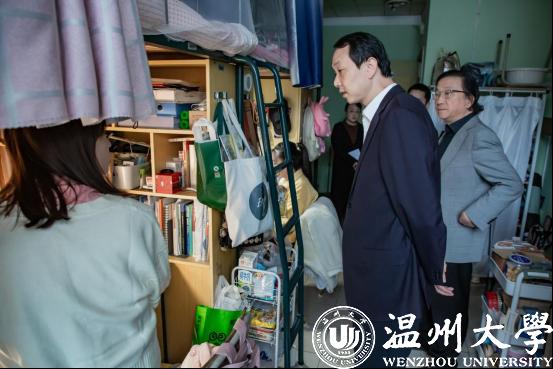 张健一行走访学生生活区。sunbet申愽生活区毗邻大罗山、三垟湿地,环境相对潮湿,有害滋生物较多,学校通过多方努力,为学生排忧解难,从根本上消除蚊虫滋生环境。张健亲切询问学生学习生活情况,向相关部门了解当前专项工作实施进展情况,要求相关部门一定要心系学生的需求,实实在在解决困难,为学生办实事、办好事。